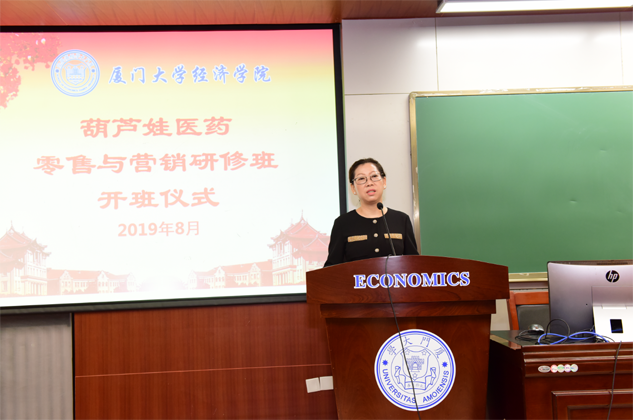 8月31日,尊龙医药零售与营销研修班开班仪式在厦门大学经济学院举行,为期8天的“厦大尊龙班”正式拉开帷幕。厦门大学经济学院继续教育中心主任廖景峰先生与尊龙药业集团董事长刘景萍女士分别在开班仪式上致辞,中国医药物资协会研究院执行院长代航先生担任本次研修班班主任并主持开班仪式。